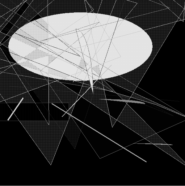 A random number of ovals, rectangles, polygons, lines, and arcs are plotted on a tkinter canvas using python. The sizes and colors also generated randomly. However, colors are restricted to certain values based on the time of day. There are dark, light, grayscale, and normal color values that are chosen from.